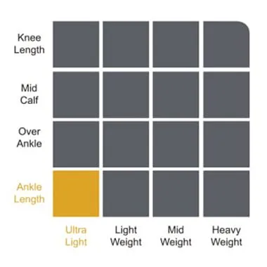 Носки имеют довольно широкую резинку, которая плотно обхватывает ногу. В целом эта модель – невысокая, что легко объясняется ориентированностью на теплую погоду. Но от лишней влаги такие носки защищают превосходно. Для этого в их пошиве используется особый материал – мембрана. Он отличается избирательной проницаемостью, а потому не пропускает внутрь воду, хотя совсем не препятствует свободной циркуляции воздуха. В то же время, в обратном направлении влага сквозь мембрану легко проходит, позволяя выводить пот, выделяемый кожей ног. Поскольку сама по себе мембрана – очень тонкая, с обеих сторон она защищена двумя слоями ткани. Снаружи используется смесь полиамида (97%) с эластаном (2%) и полиэстером (1%). Изнутри материал состоит на 76% из полиэстера (используется особый трикотаж Coolmax) и на 24% из полиамида.